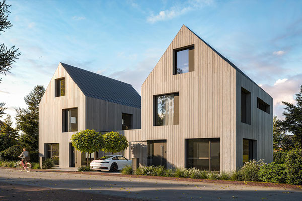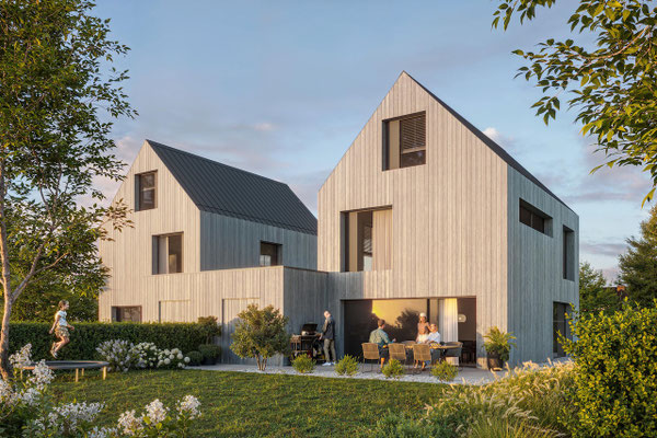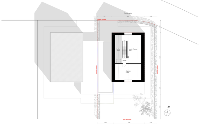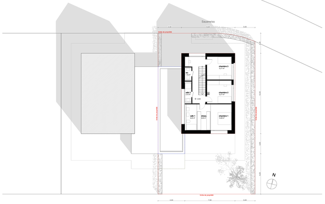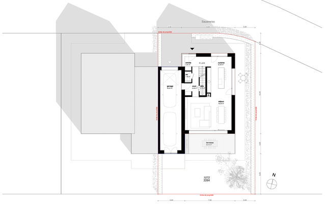 Basic evaluation and development study of a detached house in Hellange, Luxembourg. The plot, which is oriented from north to south, is located in a newly created residential area. The study